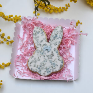 Verschenke zu Ostern einen besonderen Genuss. Ein liebevoll von Hand dekorierter Motivkeks im zarten Floralen-Vintage-Ostermotiv, stilvoll verpackt in einer Geschenkbox. Die frisch gebackenen Kekse aus zartem Mürbeteig werden mit Fondant verziert und sind in zwei Geschmacksrichtungen und Motiven erhältlich – feine Vanille und fruchtige Orange.
